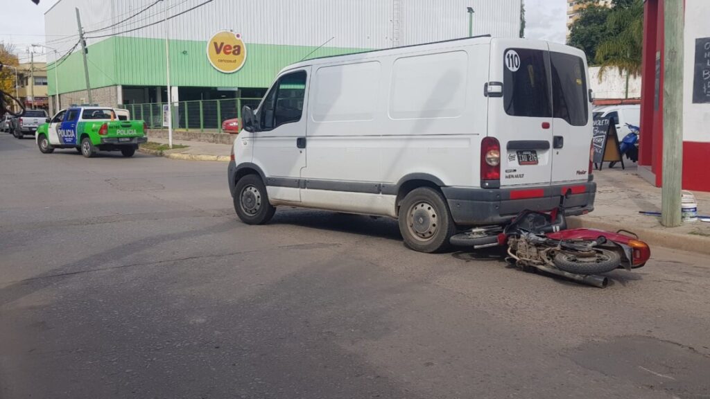 En la jornada de ayer pasadas las 13 horas el personal policial acude a calle Balcarce y 25 de Mayo donde por motivos que se trata de establecer una motocicleta 110 cc conducida por ciudadana mayor de edad, con la parte posterior de una trafic conducida por ciudadano mayor de edad