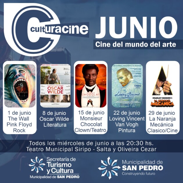 La Secretaria de Turismo y Cultura lleva a cabo un ciclo de películas del mundo del arte que se proyectan en el Teatro Municipal Siripo durante el mes de junio los días miércoles a las 20:30 hs. en Salta y Oliveira Cezar.