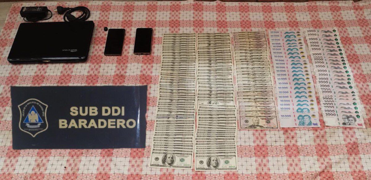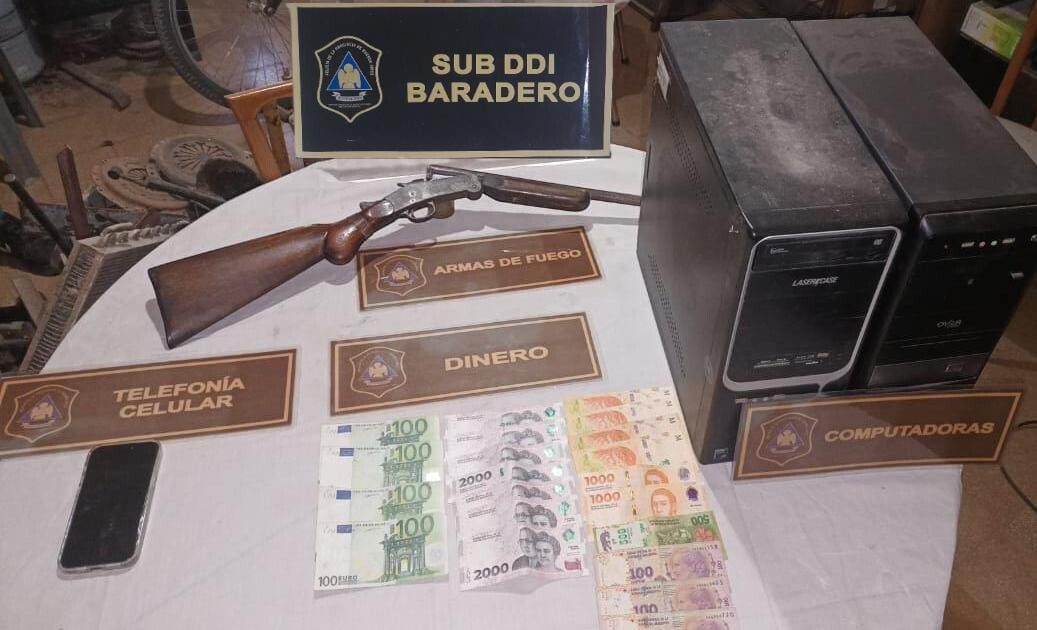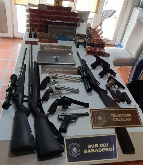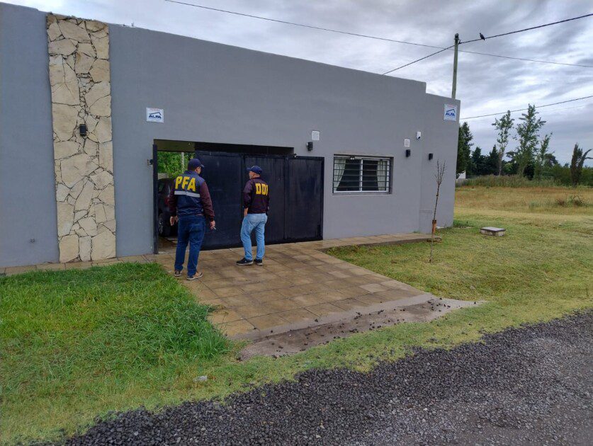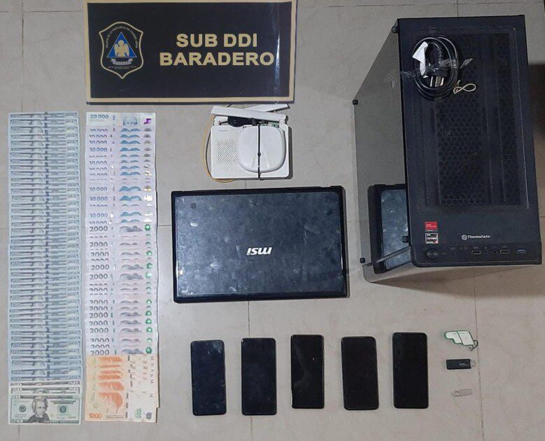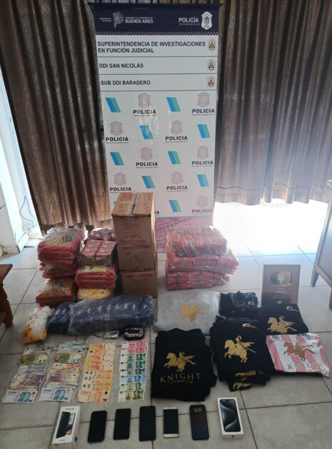 - Secuestro de múltiples elementos, incluyendo teléfonos celulares, computadoras, laptops, dispositivos USB, dinero en efectivo en diversas monedas (pesos, dólares y yuanes), armas y marihuana en uno de los domicilios de San Antonio de Areco.
