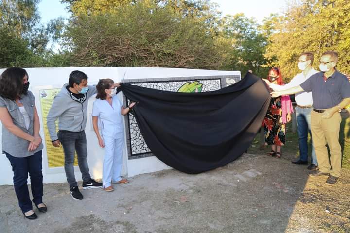 Autoridades municipales participaron ayer por la tarde de la colocación del mural en mosaiquismo donado por un grupo de artistas como reconocimiento a los trabajadores de la salud, sobre todo en este 1° de mayo.