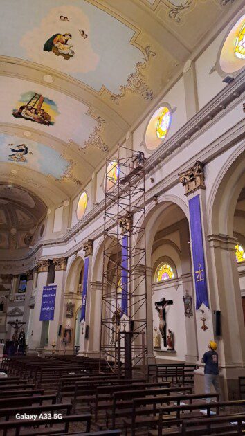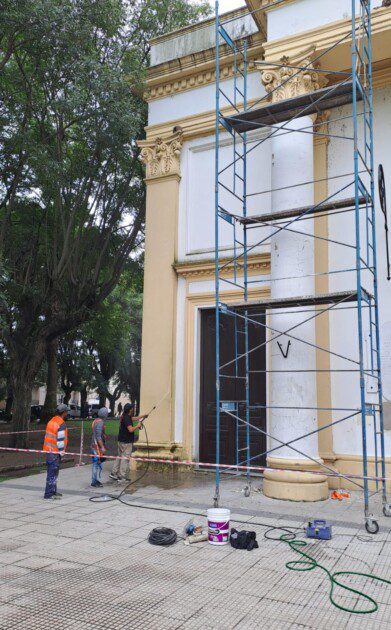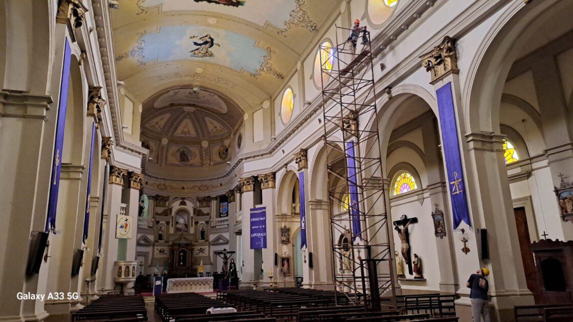 Durante la mañana de hoy, se pudieron observar los primeros avances en pintura y restauración de techos, así como también en el interior del edificio. Estas tareas se enmarcan en la campaña solidaria impulsada por la parroquia, destinada a recaudar fondos para mejorar el estado del histórico templo.