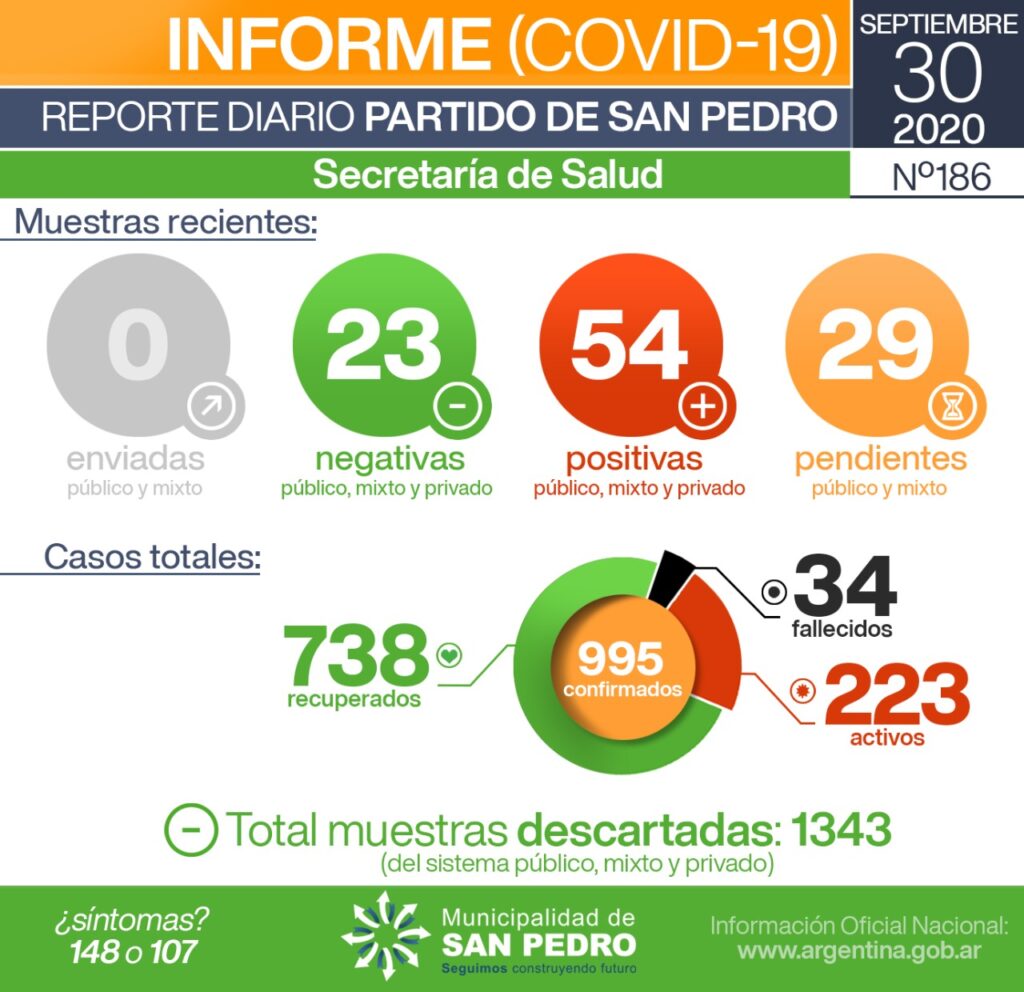 La Secretaría de Salud de la Municipalidad de San Pedro informa que se han recibido resultados de muestras pendientes de los últimos envíos a los diferentes laboratorios que reciben los hisopados realizados en San Pedro.