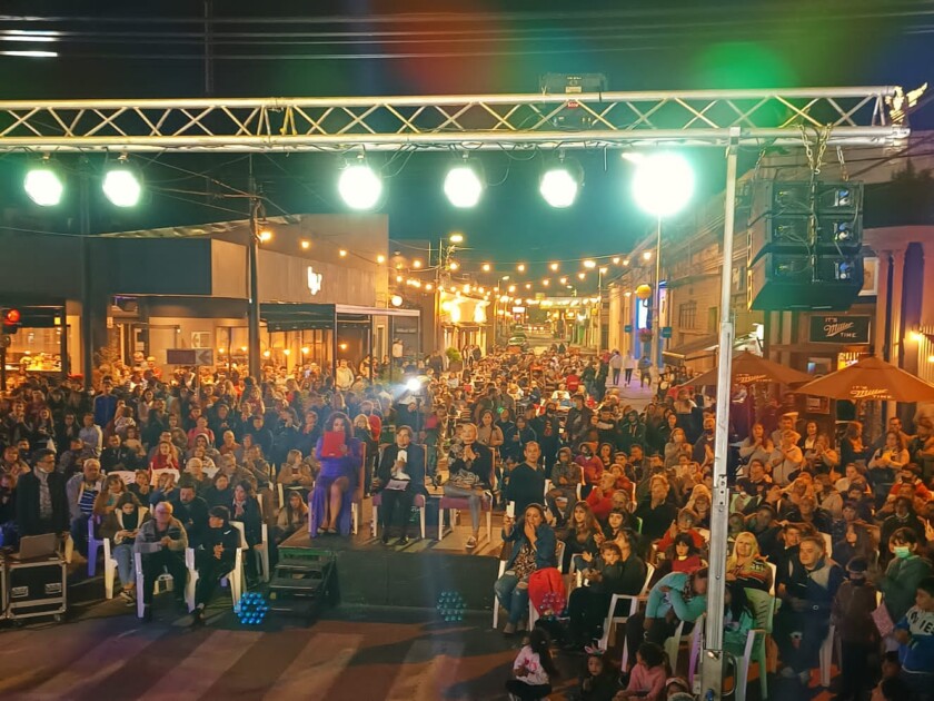 El dúo “Nunca es tarde” fueron los encargados de abrir el escenario montado especialmente en la peatonal para que sampedinos y turistas tengan acceso de forma gratuita a las diferentes propuestas artísticas que ofrecían los participantes, en su mayoría de la ciudad pero también de ciudades vecinas, quienes competían por el primer lugar que otorgó 50 mil pesos.