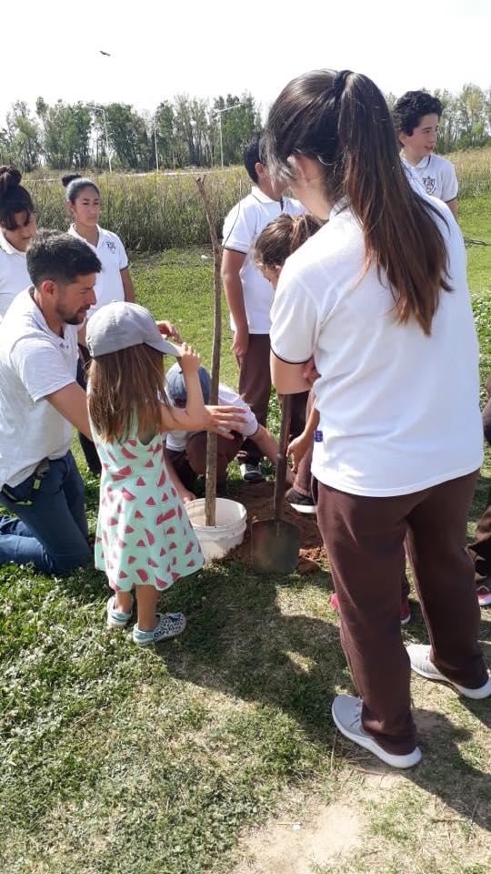 Se realizó la plantación de 4 sauces criollos, 4 ceibos y 2 Sen de campo, provistos por docentes de la escuela, ceibos donados por el vivero de Liliana Adrover y Sen del Campo criados artesanalmente y con mucho amor por Alberto Aguilar.