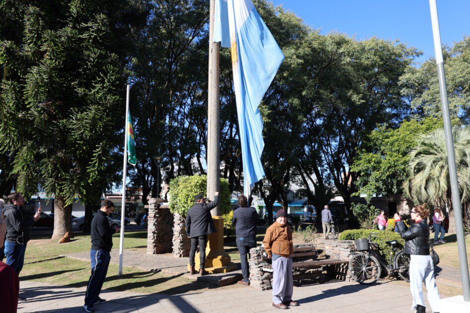 Luego del izamiento del pabellón nacional, acompañado por la canción “Aurora”, el Coro Polifónico Guillermo Farabolini, dirigido por la profesora Jorgelina Almeida, interpretó el Himno Nacional Argentino. También se colocaron ofrendas florales al pie del monumento a Manuel Belgrano y se compartieron reflexiones sobre el valor de la fecha y lo que representa nuestra bandera.
