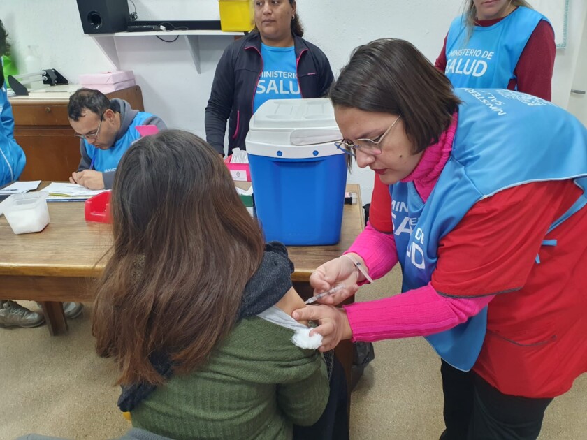 Durante los últimos días, el equipo de vacunación coordinado por la Dra. Silvana Morales estuvo vacunando en La Tosquera, Escuela Industrial, PREAR, el Jardín de Mataderos, Santa Lucía y diferentes campos donde se trabaja con aves.