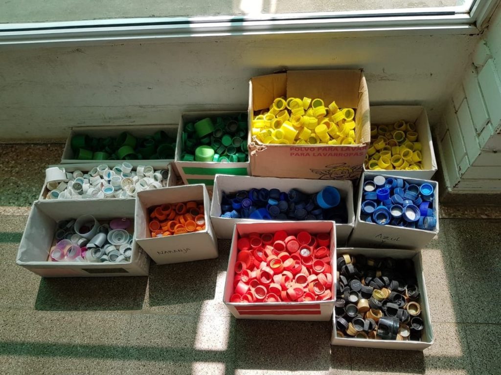 Conociendo sobre el beneficio económico para el Hospital Garrahan de recibir las tapitas separadas por colores, Santa Lucía Ecológica invitó a los abuelos del Hospital y Hogar Geriátrico de Santa Lucía a realizar esta tarea. Durante cuatro encuentros los abuelos conocieron la propuesta, se involucraron y clasificaron las tapitas alternando con charlas, música y muy buen ánimo.