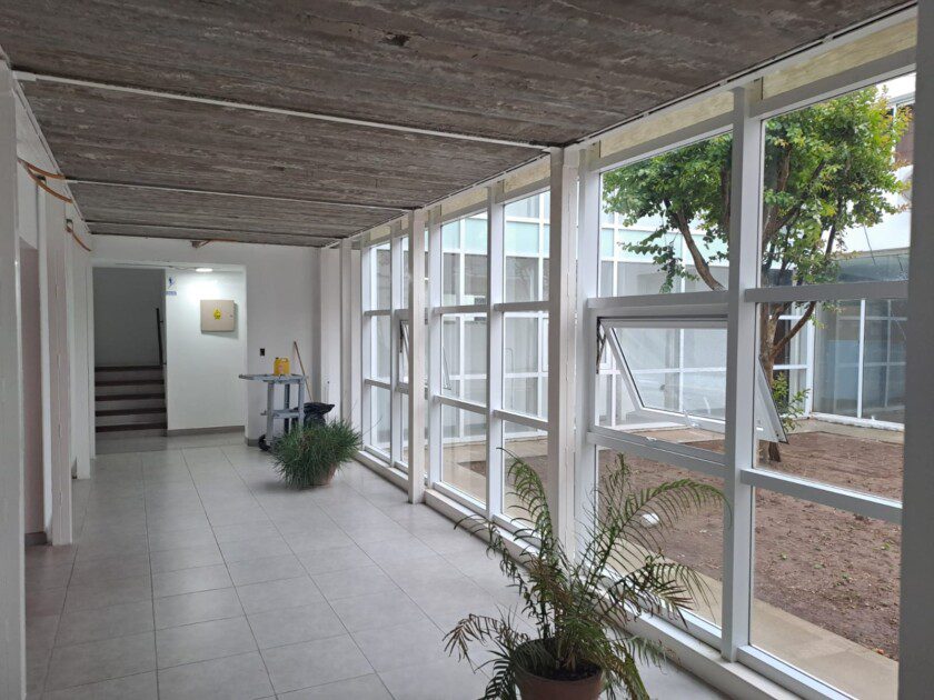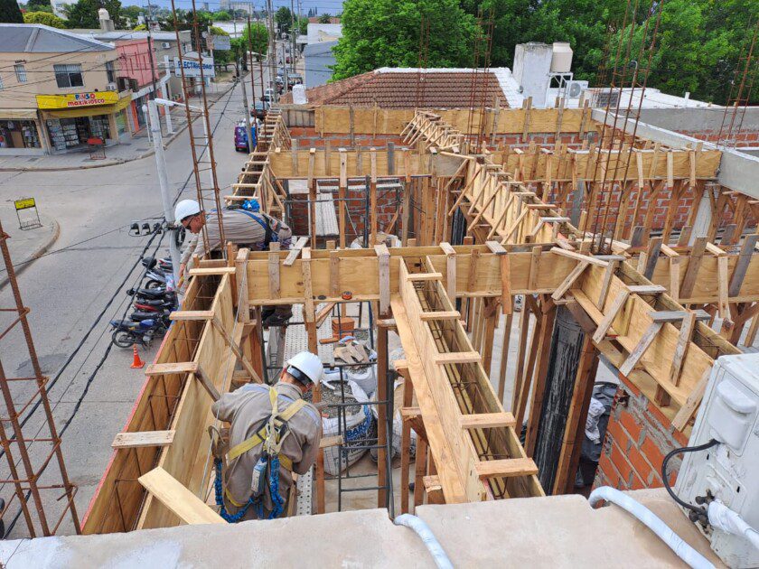 En el Sanatorio Coopser, se está ejecutando la losa sobre el primer piso del nuevo sector de atención al público y acceso de ambulancias, ampliación que permitirá mayor capacidad operativa y más consultorios médicos.