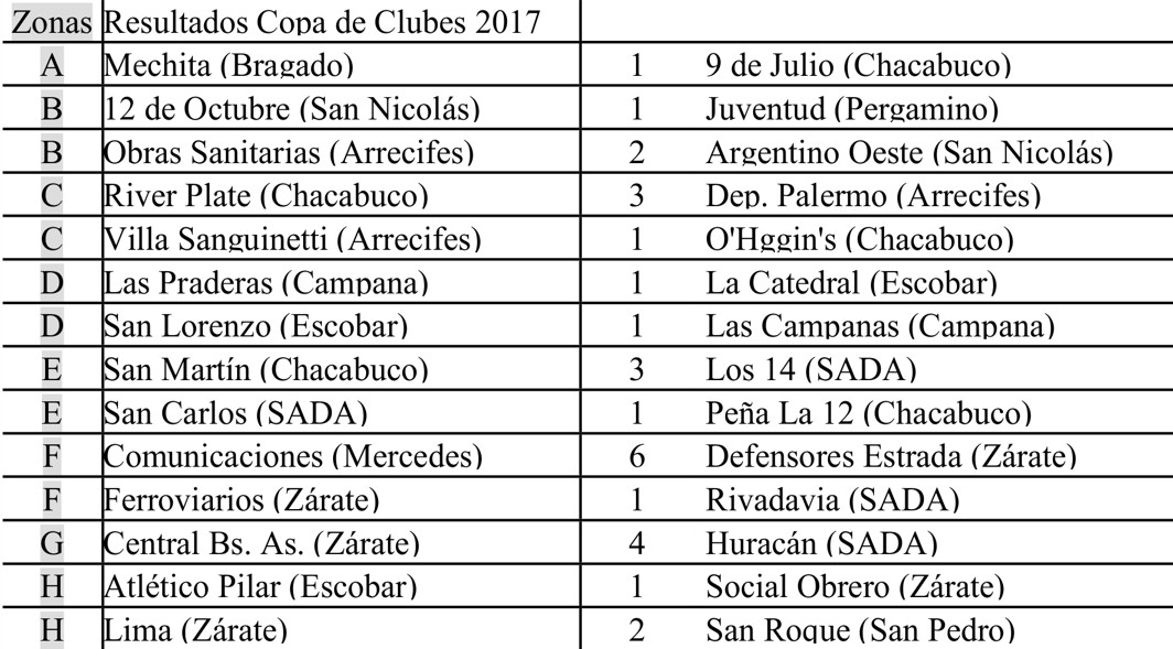 COPA DE CLUBES: Zona por zona todos los resultados Deportes 30 enero, 201724 enero, 2026Fernando Gonzalez Bettendorff El torneo «Carlos Caly Tasistro» que organiza Federación Norte de Fútbol continúa llevándose a cabo con el programa estipulado. Los resultados de la segunda fecha fueron los siguientes: Próxima fecha (La 3ra, ultima de la 1ra rueda)