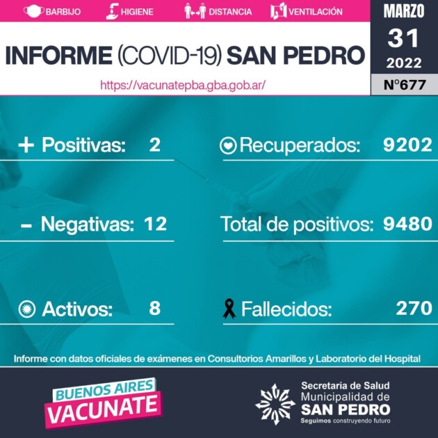 La Secretaría de Salud de la Municipalidad de San Pedro brinda el informe oficial del día de la fecha, en el seguimiento de la Pandemia de Covid-19.