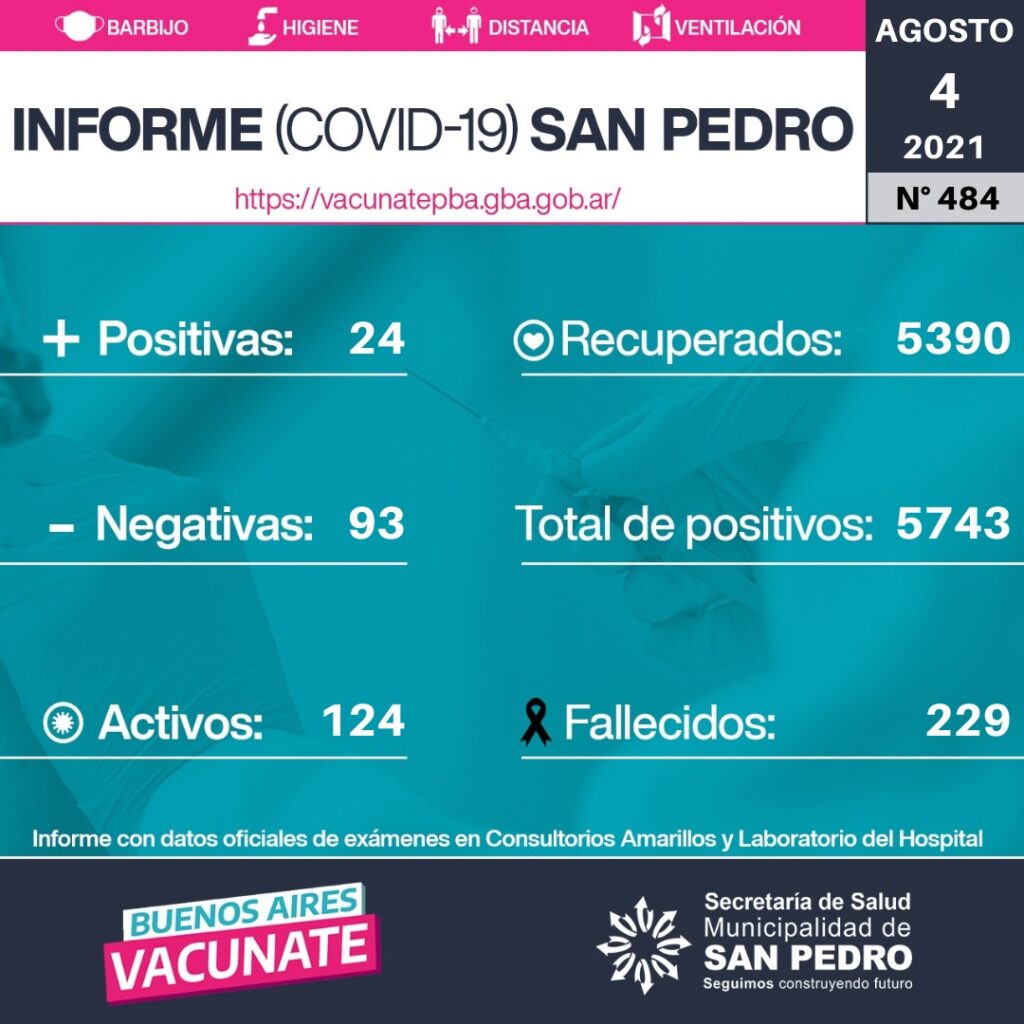 La Secretaría de Salud de la Municipalidad de San Pedro brinda el informe que acompaña la placa del día de la fecha, en el seguimiento de la Pandemia de Covid-19.