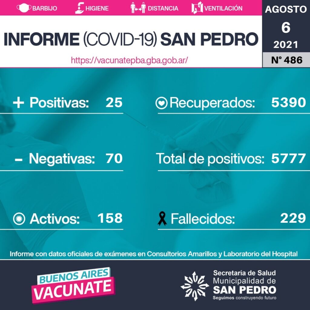 La Secretaría de Salud de la Municipalidad de San Pedro brinda el informe que acompaña la placa del día de la fecha, en el seguimiento de la Pandemia de Covid-19.