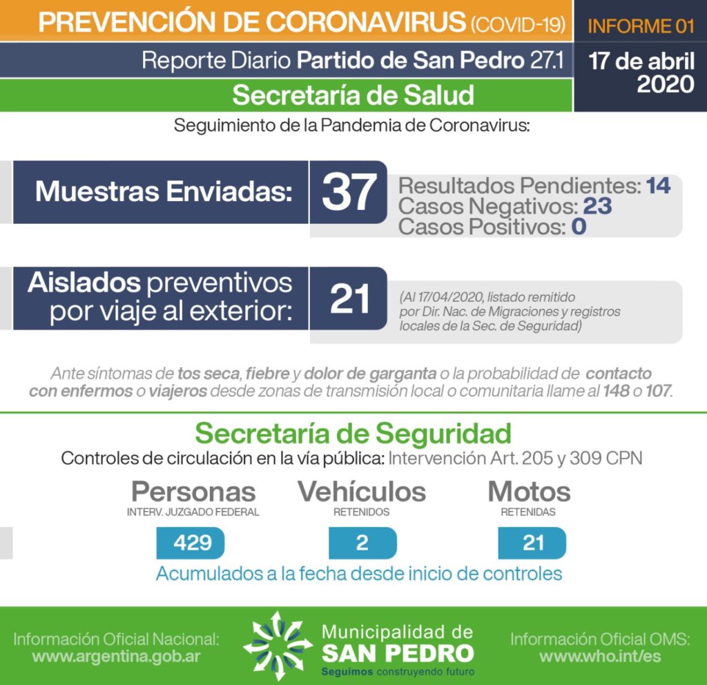 Ademas se informa las novedades locales relacionadas con el seguimiento de la Pandemia de Coronavirus: