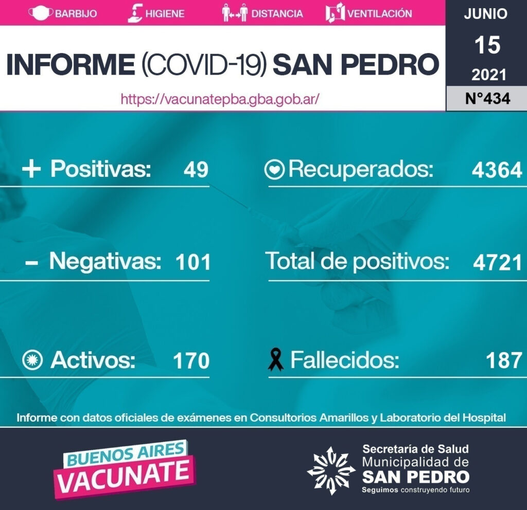 La Secretaría de Salud de la Municipalidad de San Pedro brinda el informe que acompaña la placa del día de la fecha, en el seguimiento de la Pandemia de Covid-19.