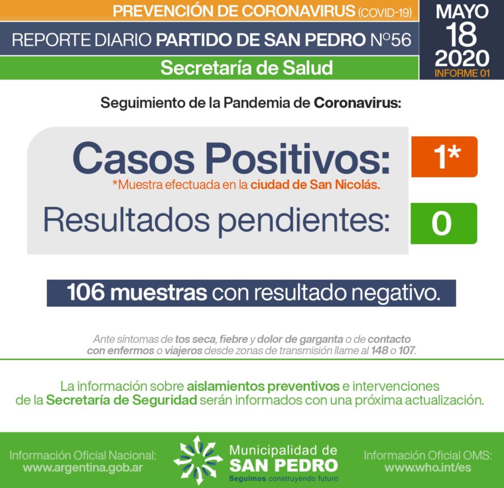 La Secretaría de Salud de la Municipalidad de San Pedro informa las novedades locales relacionadas con el seguimiento de la Pandemia de Coronavirus: