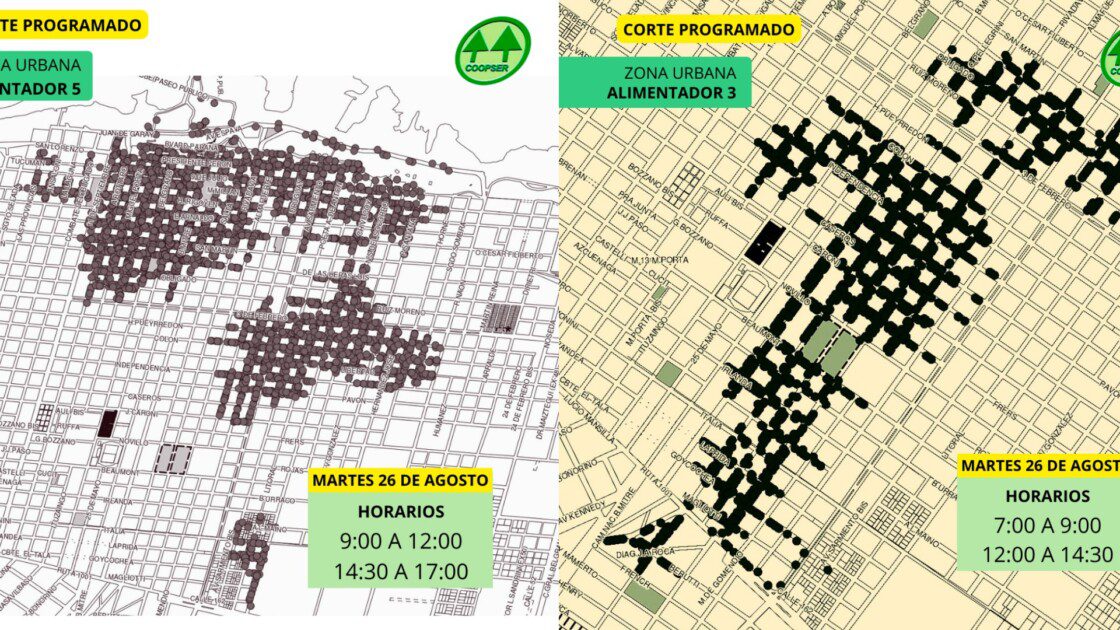 Según informaron, los cortes se producirán en distintos sectores urbanos y rurales, en horarios escalonados, y en algunos casos con dos franjas horarias sin suministro eléctrico.