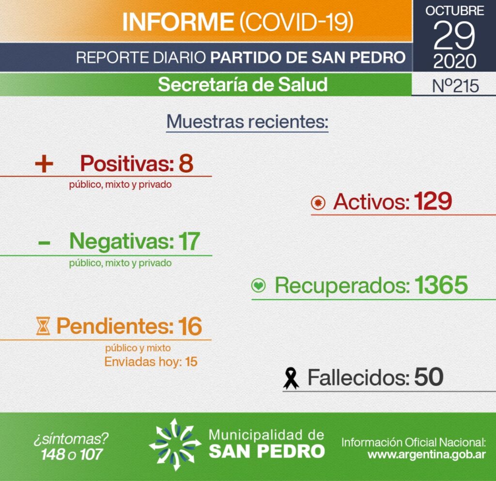 La Secretaría de Salud de la Municipalidad de San Pedro informa la actualización de seguimiento a la Pandemia de Covid-19.