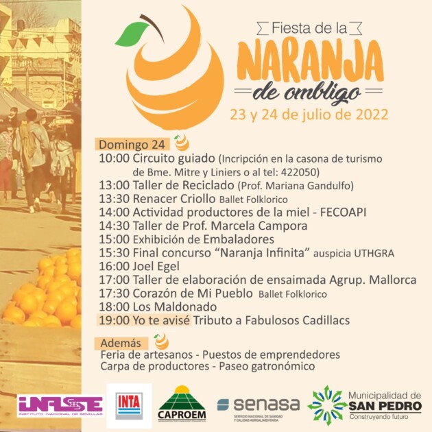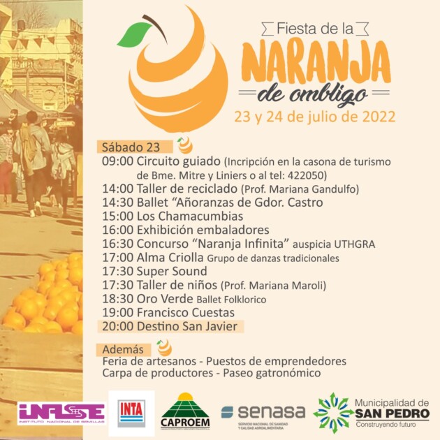 Este sábado 23 y domingo 24 de julio se realizará la cuarta edición de la Fiesta de la Naranja de Ombligo que lleva adelante la Municipalidad de San Pedro junto a INTA, CAPROEM, SENASA, INASE y la Cámara de viveristas.