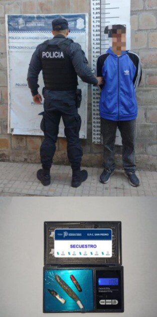 En el marco de operativos preventivos realizados por personal de la Estación de Policía Comunal San Pedro, se logró la aprehensión de cuatro personas mayores de edad por infracción a la Ley 23.737 de estupefacientes.
