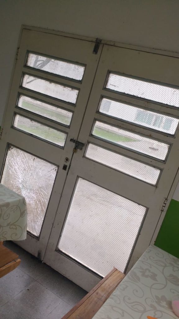 «Provocaron destrozos en la puerta de entrada, violentaron la puerta del costado que es por donde ingresaron, forzaron un enrejado que tiene un calefactor, el vidrio de la puerta de atrás también lo rompieron parece de una patada, si lograron entrar hasta la cocina, que tampoco se llevaron ningún tipo de mercadería, también provocaron destrozos, estaba todo sucio, tiraron el tacho de basura y desparramaron bolsas con verduras»