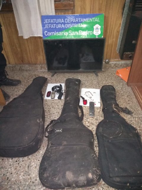 Los elementos sustraídos fueron recuperados tras horas de rastrillajes: una guitarra criolla con funda, una guitarra electrica con funda, un Smart TV, un TV de 32″, control remoto, y elementos de valor para la familia.