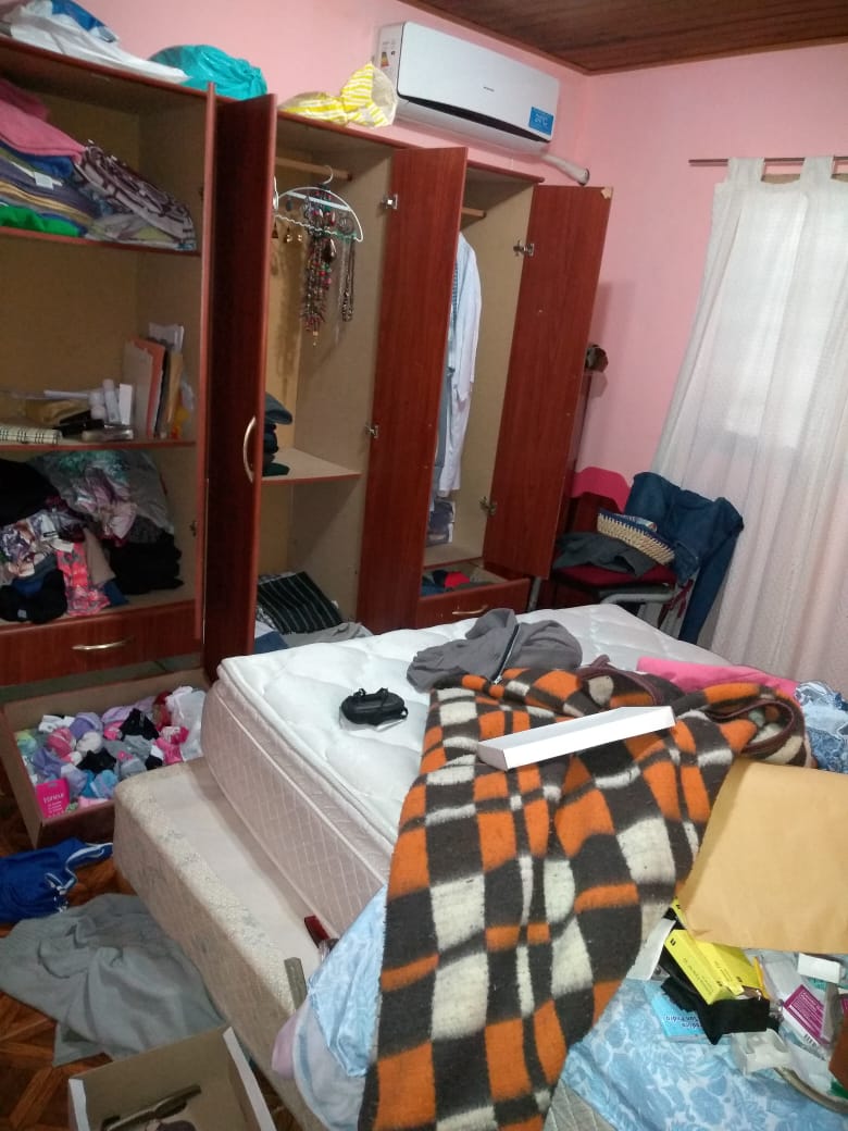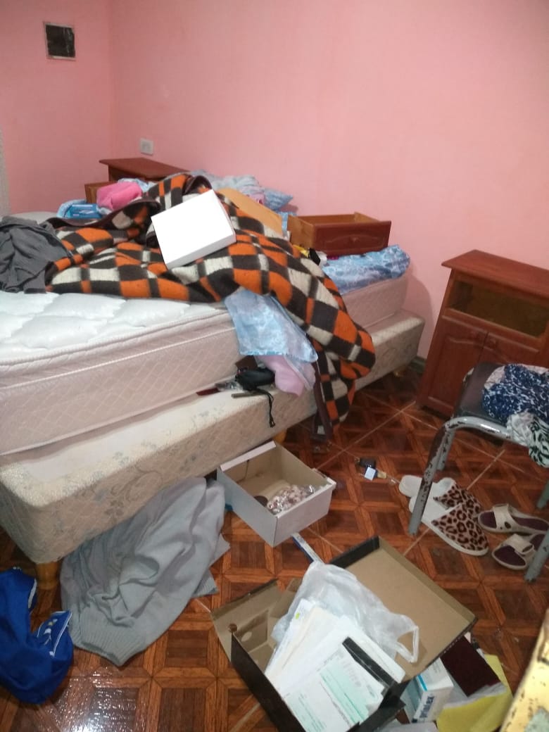 «Llegamos de trabajar y nos encontramos con la casa toda revuelta, el comedor las habitaciones, el vidrio del ventanal roto, un televisor de 50′ que teníamos roto en el piso» contaba a este medio Rosa, su dueña que con mucho dolor e impotencia expresaba » estoy sin dormir, todavía esperando que la policía resuelva algo, que llegue cientifica, siento mucha impotencia por todo esto».
