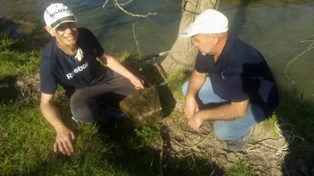 Integrantes del Grupo Conservacionista de Fósiles lograron ubicar la zona donde funcionó el antiguo molino harinero de la familia Meglio y recuperar, allí, una parte de las piedras o “muelas” de molienda utilizadas en el histórico emprendimiento.