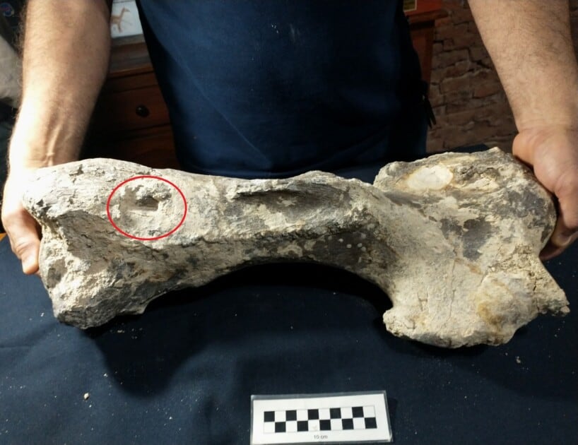 De inmediato comprendimos que estábamos ante una enorme mordida; de una boca tan grande como para atrapar, apretar y quebrar el brazo de un lestodonte, ya que esos animales eran bestias de casi 4 metros de largo y unos 3.000 kilogramos de peso.