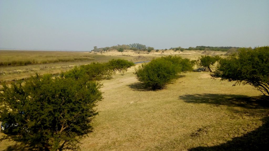 El lugar donde se hallaron las piezas es un campo propiedad de la firma arenera Spósito S.A., un área de barrancas y cortadas naturales que ha aportado numerosos e importantes fósiles a la colección del museo. El sitio, enmarcado por extensos humedales, es un lugar propicio para el trabajo del Grupo Conservacionista de Fósiles, equipo del museo de San Pedro. Allí, en sedimentos depositados hace más de 500.000 años, se descubrió un grupo de más de 130 huesillos dérmicos de un perezoso gigante.