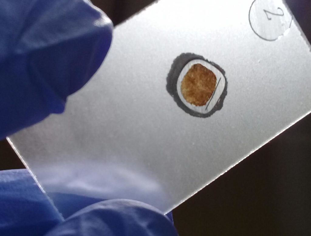 El investigador Dr. Luciano Brambilla (UNR), señala que “como la forma externa de los huesos de la piel de este antiguo perezoso es tan particular a simple vista, también estudiamos la estructura interna a nivel microscópico. Cortamos finas láminas a partir de algunos de los huesitos bipiramidales y descubrimos que el patrón de fibras observado en estos osteodermos era muy denso y novedoso, algo que también ayuda a caracterizar a estos pequeños elementos. Es un enigma aún por responder a qué especie de animal pertenecieron porque no hay en las colecciones nada que se parezca a estos osteodermos. Mas aún, es relativamente poco el conocimiento que tenemos sobre perezosos de tanta antigüedad como los que se encuentran en los yacimientos de San Pedro y recién comenzamos a entender aspectos de su naturaleza y diversidad”.