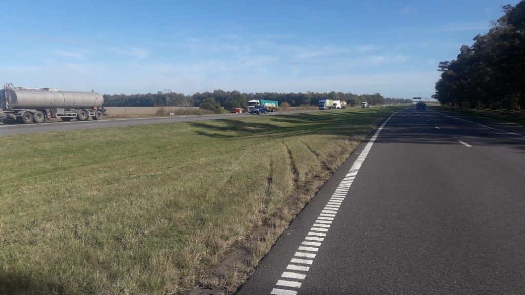 El vehículo utilitario de color blanco circulaba por carril Buenos Aires – Rosario cuando pierde el control y se cruza hacia la otra calzada en contramano, originando un vuelco.