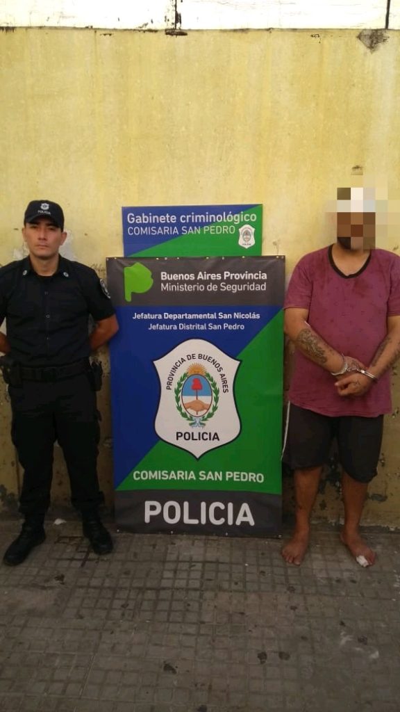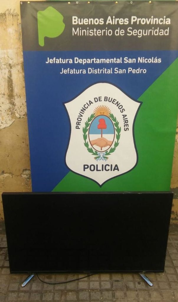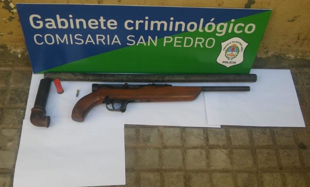 En un rápido proceder y alertados de una pelea a cuadras del lugar, mas precisamente en Gral. Pueyrredon y Javier Rivero, había una trifulca, logrando la aprehensión de un peligroso delincuente de 25 años de edad, frondosos antecedentes, quien además se encontraba portando arma de fuego intenta huir e introducirse en la vivienda, siendo aprehendido, secuestrando en su poder carabina 22 cargada, y en el ingreso a la vivienda un arma fabricación casera “tumbera” cargada, y el TV 42 pulgadas, que momentos antes sustrajo en el hecho mencionado.