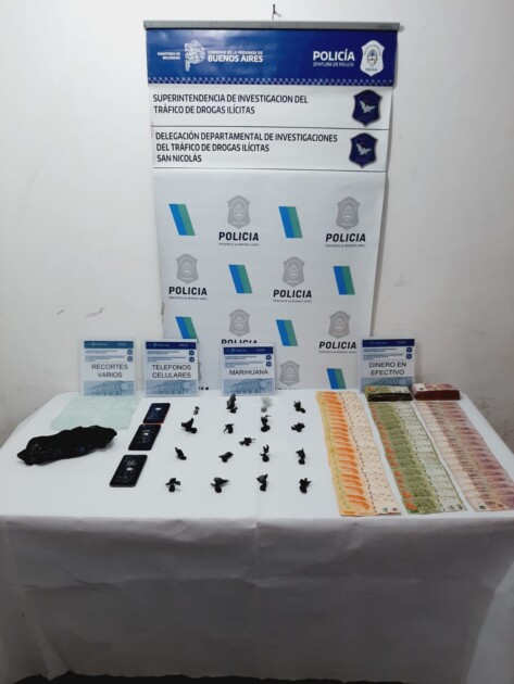 En el lugar se secuestraron varios gramos de marihuana fraccionada, una suma importante de dinero en efectivo y telefonía celular, elementos que serán analizados para continuar con la causa. La mujer, de 31 años de edad, fue aprehendida y trasladada hoy a sede fiscal para prestar declaración según el artículo 308 del código de procedimiento penal de la provincia de Buenos Aires.