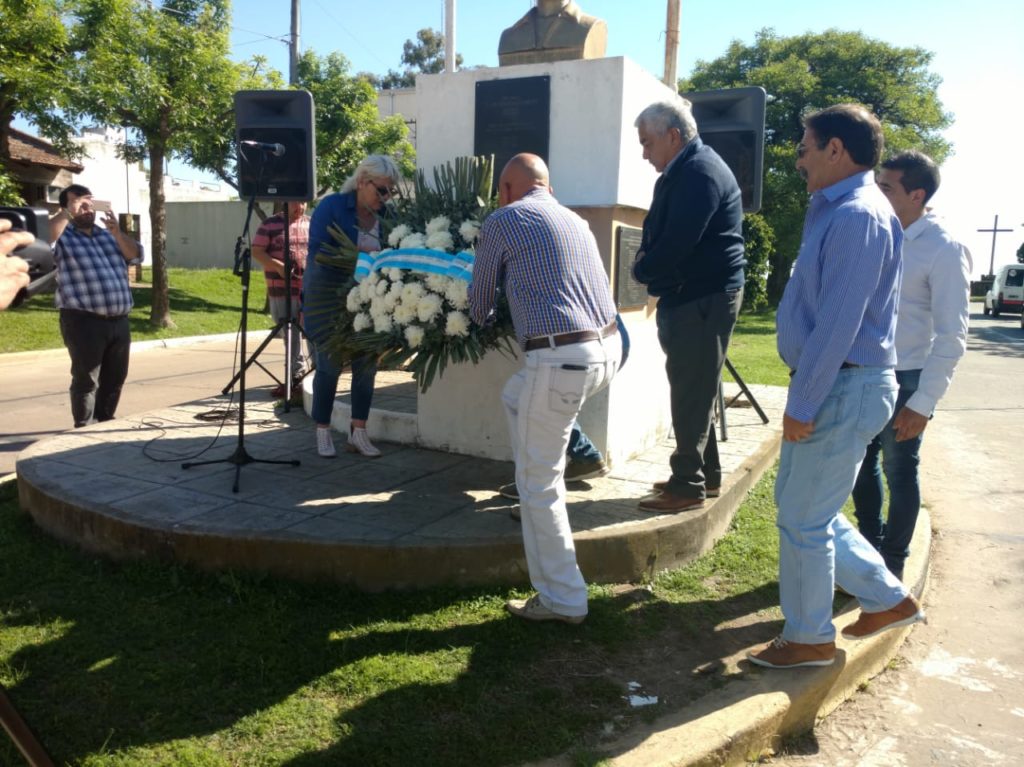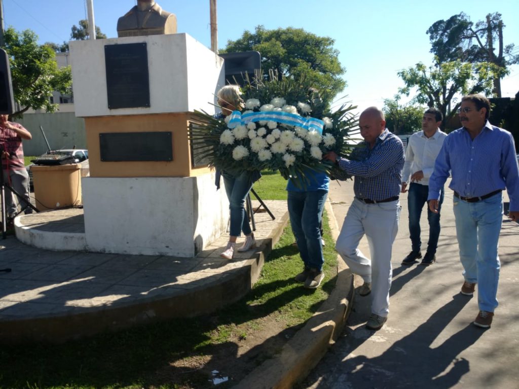 En Acto, con la presencia del Jefe Comunal, brindó unas palabras a su público y los medios presentes, luego de colocar la ofrenda floral, en el busto del coronel Juan Domingo Perón.