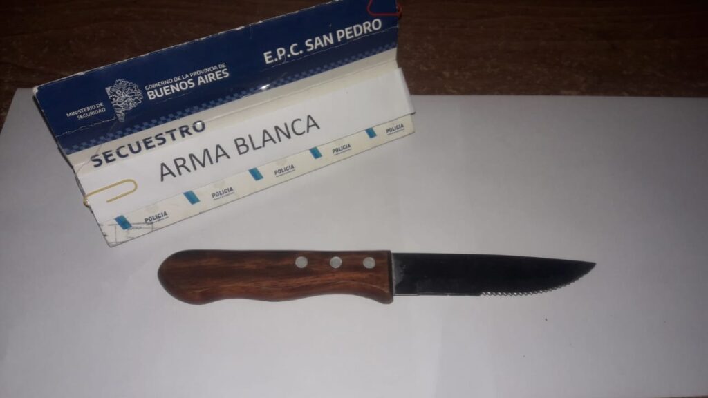 En la tarde de ayer el personal policial de la comisaría de nuestra ciudad se tuvo que hacer presente en calle Bozzano y Benefactora Sampedrina donde aprehenden a ciudadano de 19 años a quien se le secuestró en su poder arma blanca.