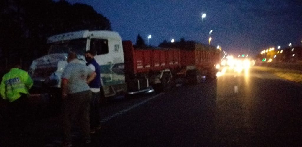 El accidente tuvo lugar en la Ruta Nacional 9 Km 154 donde dos camiones que circulaban en la misma direccion, carril Buenos Aires – Rosario, uno impacta al otro desde atras por razones que se tratan de establecer.