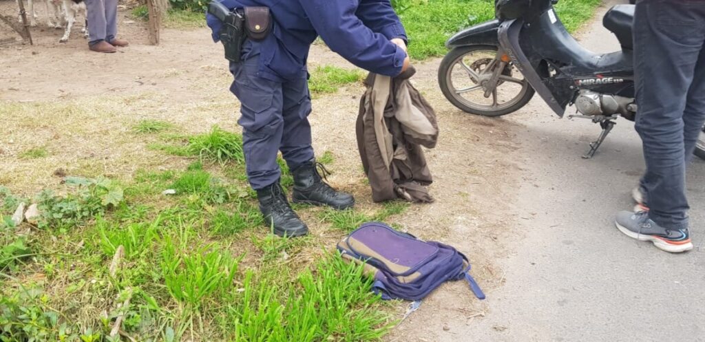 En el día de ayer 10:30 horas, personal acude a calle Independencia 1400 donde un ciudadano hace entrega de una mochila con pertenencias, propiedad de dos sujetos los cuales momentos antes se hallaban sobre el techo de su domicilio ubicado en calle humanes al 1400 y al ser alertados emprenden fuga olvidando la mochila en mención. Elementos secuestrados. Interviene UFI 05.-