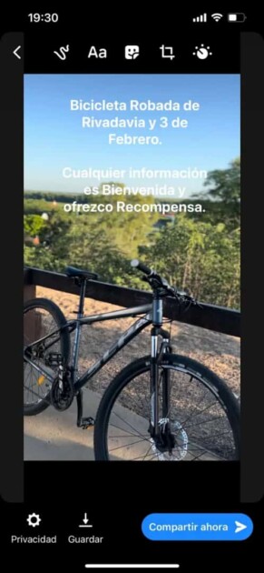 Ante la situación, el afectado decidió ofrecer una recompensa a través de las redes sociales para quien pueda dar con la persona que se llevó su bicicleta o la misma bicicleta. El número de teléfono para comunicarse con la víctima es 3329472614 para brindar cualquier información que pueda ayudar a resolver el caso.
