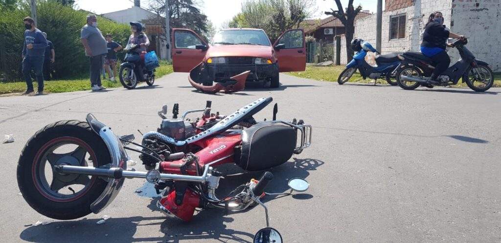 El siniestro tuvo lugar cercanas las 12 hs de este mediodía en calle Italia y Rivadavia cuando un joven y una joven que circulaba en una motocicleta tipo Dax 70 cc es colisionado por un automóvil Ford Fiesta conducido por un mayor de edad.