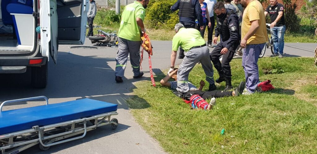 En el lugar se hizo presente una ambulancia del SAME para realizar el traslado de los motociclistas, el joven presentaba fractura de tibia y peroné, por su parte la joven seria una fractura en e femoral derecho.