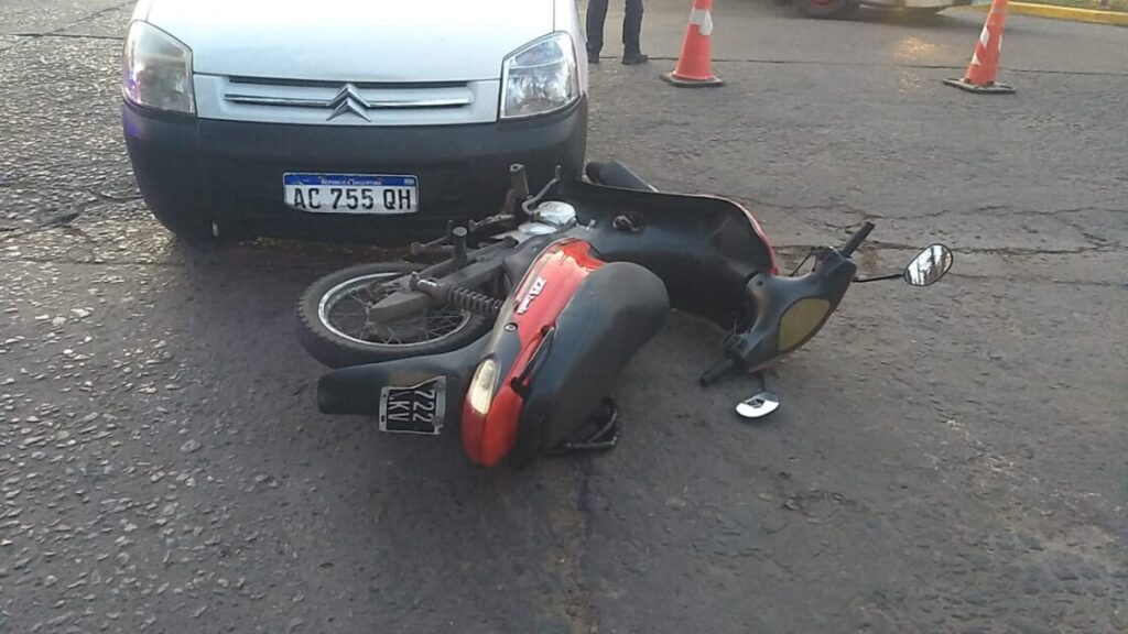 El hecho ocurrió esta tarde de martes pasadas las 18 hs cuando por razones que se tratan de establecer colisionaron una motocicleta 110 cc y una camioneta Peugeot Partner.