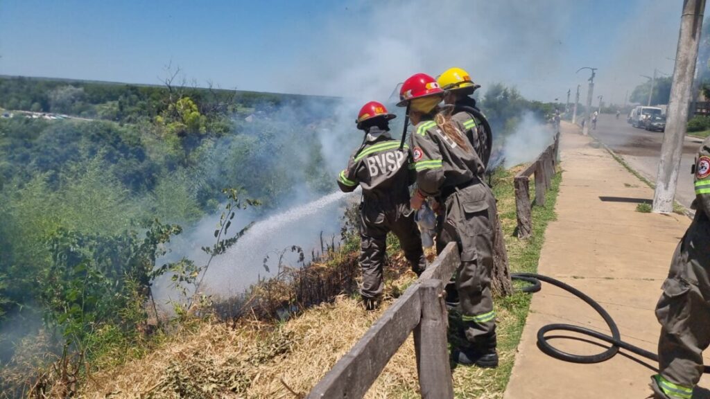 Ante la situación, vecinos intentaron sofocar el foco ígneo con baldes de agua, pero el avance del fuego hizo imposible controlarlo por sus propios medios. Minutos después, arribó al lugar una dotación de Bomberos Voluntarios, que logró controlar y extinguir el incendio, evitando que se propagara a una mayor superficie.