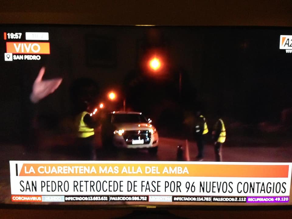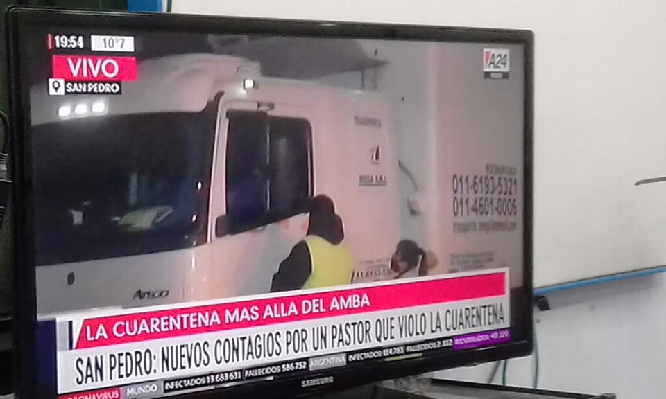 En la tarde noche de hoy pasadas las 19 hs el canal nacional A24 estuvo en el acceso de la ciudad ubicado en calle 191 desde donde trasmitio en vivo para el programa de Eduardo Feimman.