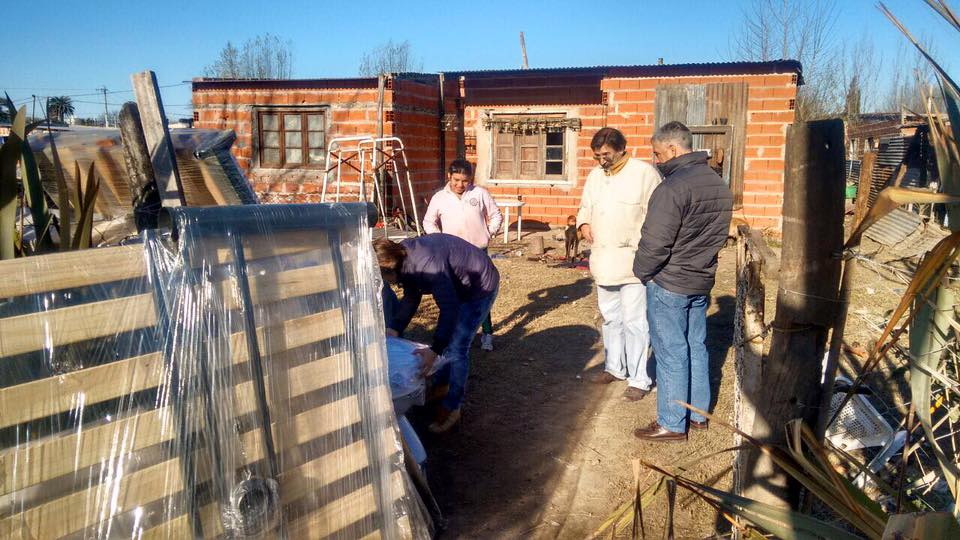 Se hizo entrega en la ciudad y en localidades a unas 30 familias que fueron relevadas por el CDR: 10 frazadas de 2 plazas, 6 sábanas 2 plazas, 17 cocinas, 2 lavarropas, 1 estufa, 131 chapas, 131 tirantes, 6 puertas de chapa reforzada, 15 roperos, 11 mesas, 73 sillas, 8 calefones, 8 griferías de lavatorio, 4 griferías de ducha, 7 puertas placa, 9 lavatorios con pie, 11 inodoros con mochila y asiento, 61 colchones de 1 plaza, 52 frazadas de 1 plaza, 22 camas cucheta, 14 colchones de 2 plazas, 10 camas de 1 plaza, 11 camas de 2 plazas, 4 rollos de membrana, 5 ventanas, 22 sábanas de 1 plaza y 29 clavaderas.