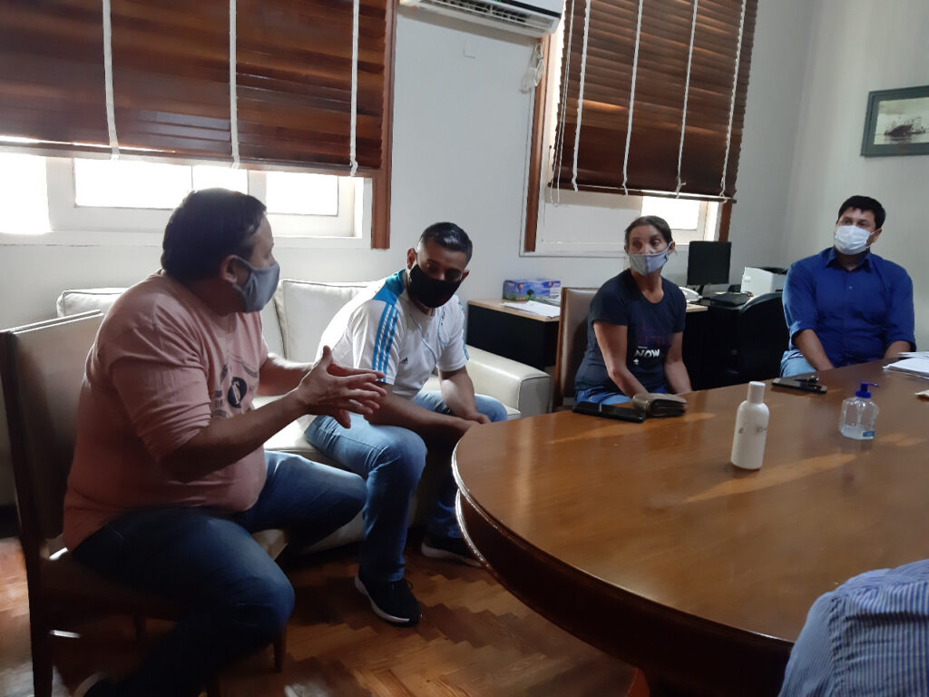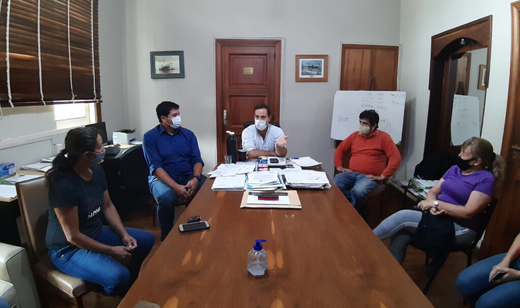 Un grupo de representantes de salones de fiestas, organizadores de eventos y prestadores de servicios de rubros afines, fueron recibidos este mediodía por el Secretario de Gobierno Silvio Corti y el Director de Modernización Hernán Contreras, para analizar alternativas que permitan obtener la autorización al funcionamiento de sus actividades, cumpliendo con protocolos sanitarios.