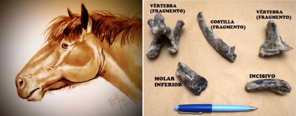 Las piezas corresponden al género Equus, que es el caballo que hoy conocemos. Estos animales llegaron a América del Sur después de que ésta se uniera con América del Norte a través del istmo de Panamá.