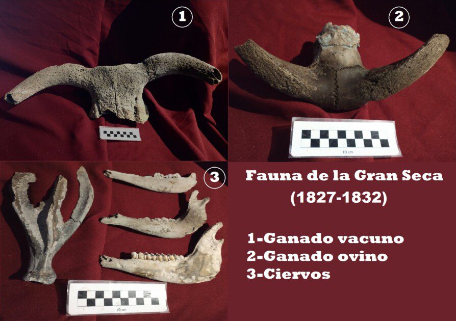 En un sector amplio de costa se recuperaron restos de ganado vacuno, ganado ovino y ciervos, que quedaron en el lugar debido a un evento climático de grandes proporciones como lo fue la Gran Seca de 1827. Este hecho, ya registrado por el equipo del museo en 2020, a poca distancia de ese lugar, fue un suceso climático que devastó las poblaciones de animales, tanto salvajes como de granja; duró unos cinco años y fue registrado por Charles Darwin en viaje por la zona, en aquellos tiempos.