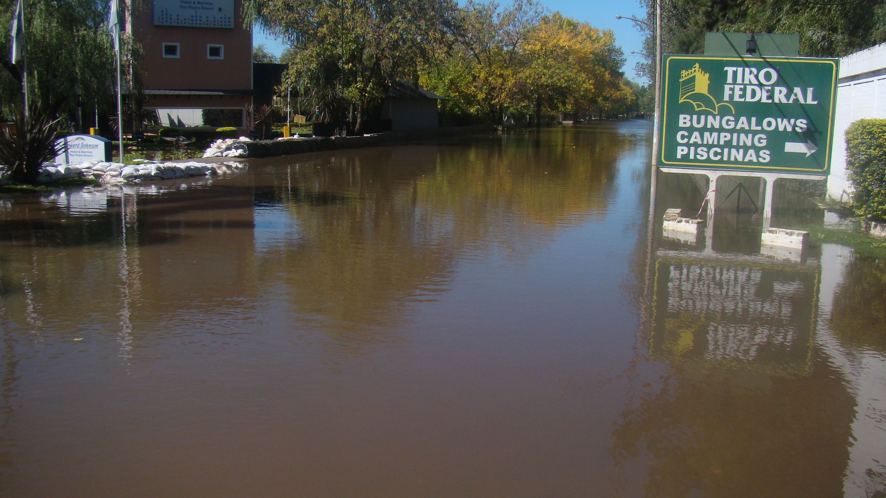 La zona de la Av. España se encuentra totalmente tapada de agua, la creciente sigue subiendo y provocando daños materiales significativo, como es el caso del reconocido hotel Howard Johnson que a pesar de el incansable trabajo con las bolsas de arena no pudieron contener el agua y hoy se encuentra lleno de agua por todos lados, el agua en la zona del bajo corto completamente la Av. España desde la bajada de Mansalife hasta la Bajada del Club Náutico y desde el mismo hasta la bajada de la Av. 11 de Septiembre. Como hasta hace unos días el agua se encuentra acechando el sector frente a Camping Safari y toda la costa hasta la bajada de Chavez, generando así preocupación en los vecinos.