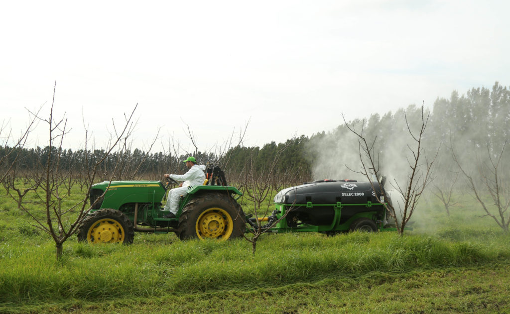 En Finca Buena Moza, visitó las 50 hectáreas en las que se trabaja la producción de duraznos. Los dueños explicaron los avances en la producción y las inversiones realizadas para el crecimiento de la empresa, y realizaron una demostración de la nueva máquina fumigadora con la que cuentan.