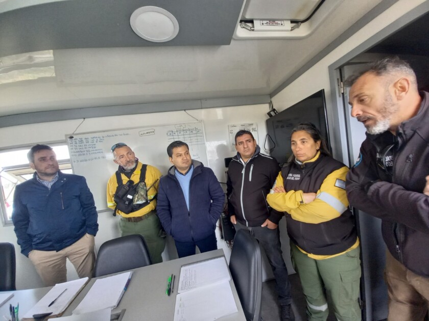 Cabandié llegó junto al Viceministro, Sergio Federovisky y se reunió con el Director del Servicio Nacional de Manejo del Fuego, Alberto Seufferheld y la coordinadora Regional, Florencia Tuñon, además de funcionarios del equipo municipal.
